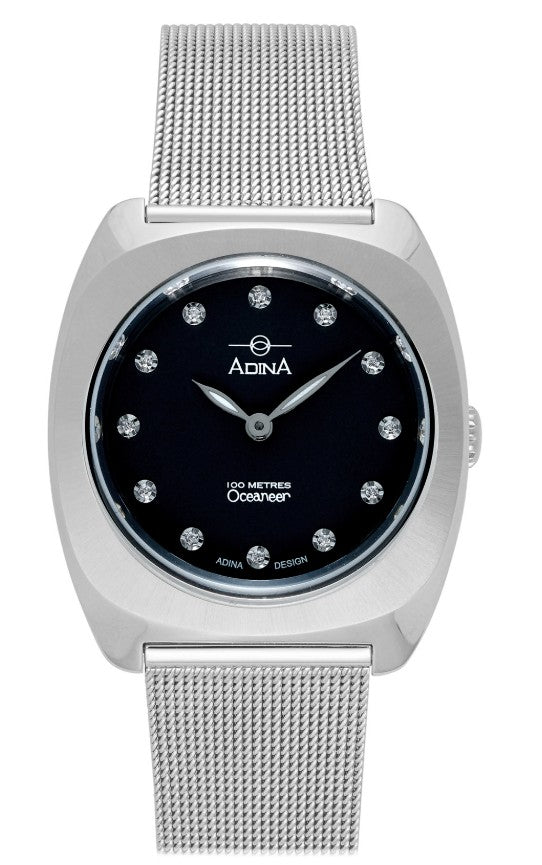 Regular price $459.00The Adina Oceaneer Sports Dress Watch CT124S5XB is water-resistant and is a stunning fusion of style, craftsmanship, and precision. Perfectly balanced between sporty functionality and fashion-forward design, the Adina Oceaneer Sports Dress Watch CT124S5XB is part of Adina’s acclaimed collection, known for its heritage in producing robust, high-performance watches. It boasts a 100-meter water resistance, making it an excellent choice for those with an active lifestyle. Adorned with sparkling lab-grown diamonds, it catches the light beautifully, offering a touch of luxury that complements the season’s on-trend colours.