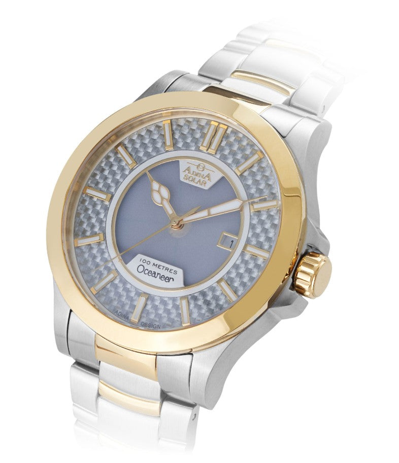 The Adina Oceaneer Solar Sports Watch CT122-ST1XB is a testament to that vision—an elegant sports watch built to perform in the everyday and beyond. Subtly engineered, the carbon fibre patterned dial not only adds a dynamic, sporting character to this Oceaneer but also allows light to reach the solar panel beneath, blending functionality with design flair.