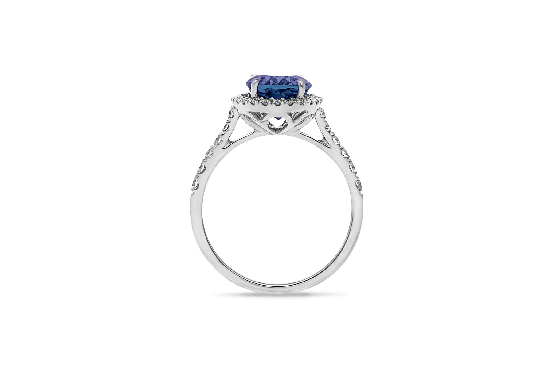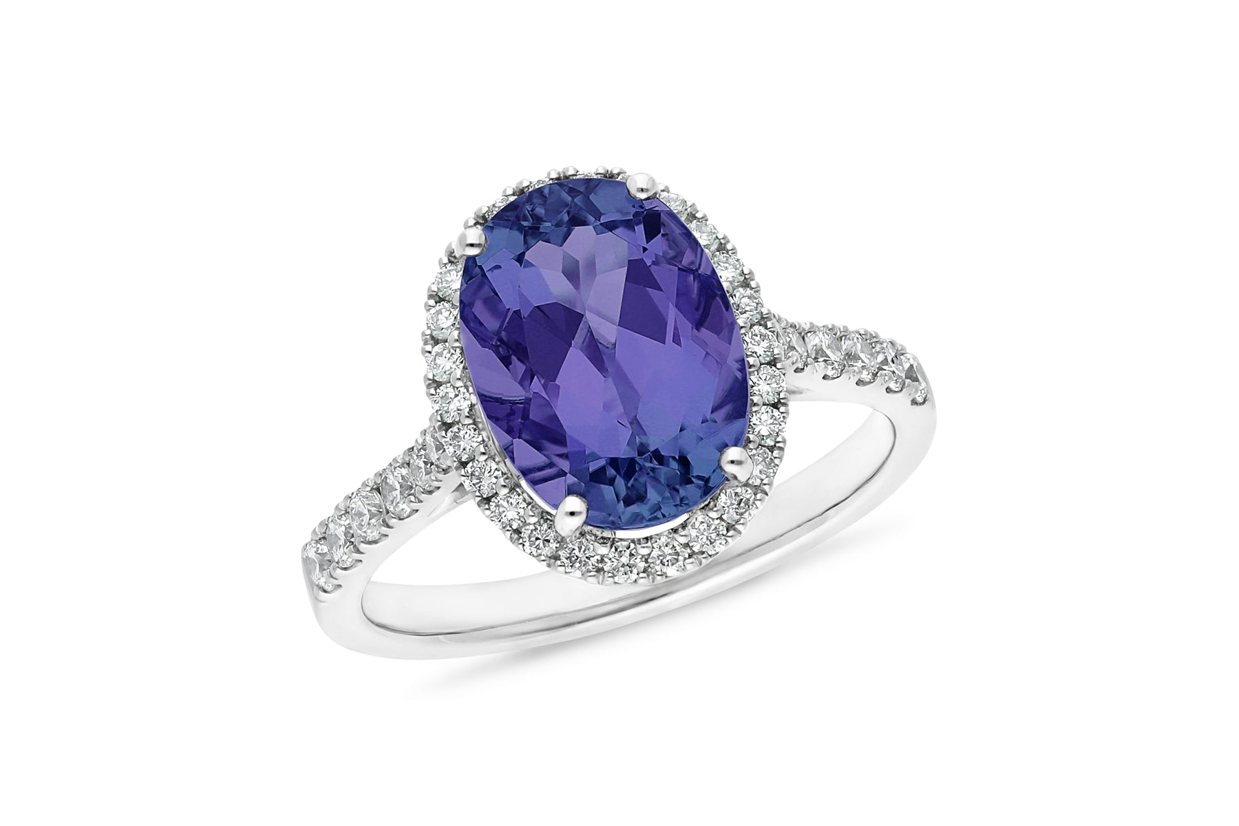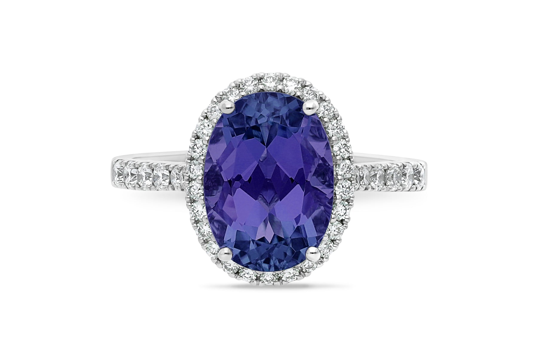 Style: Oval Tanzanite Halo Ring with Diamond Shoulders